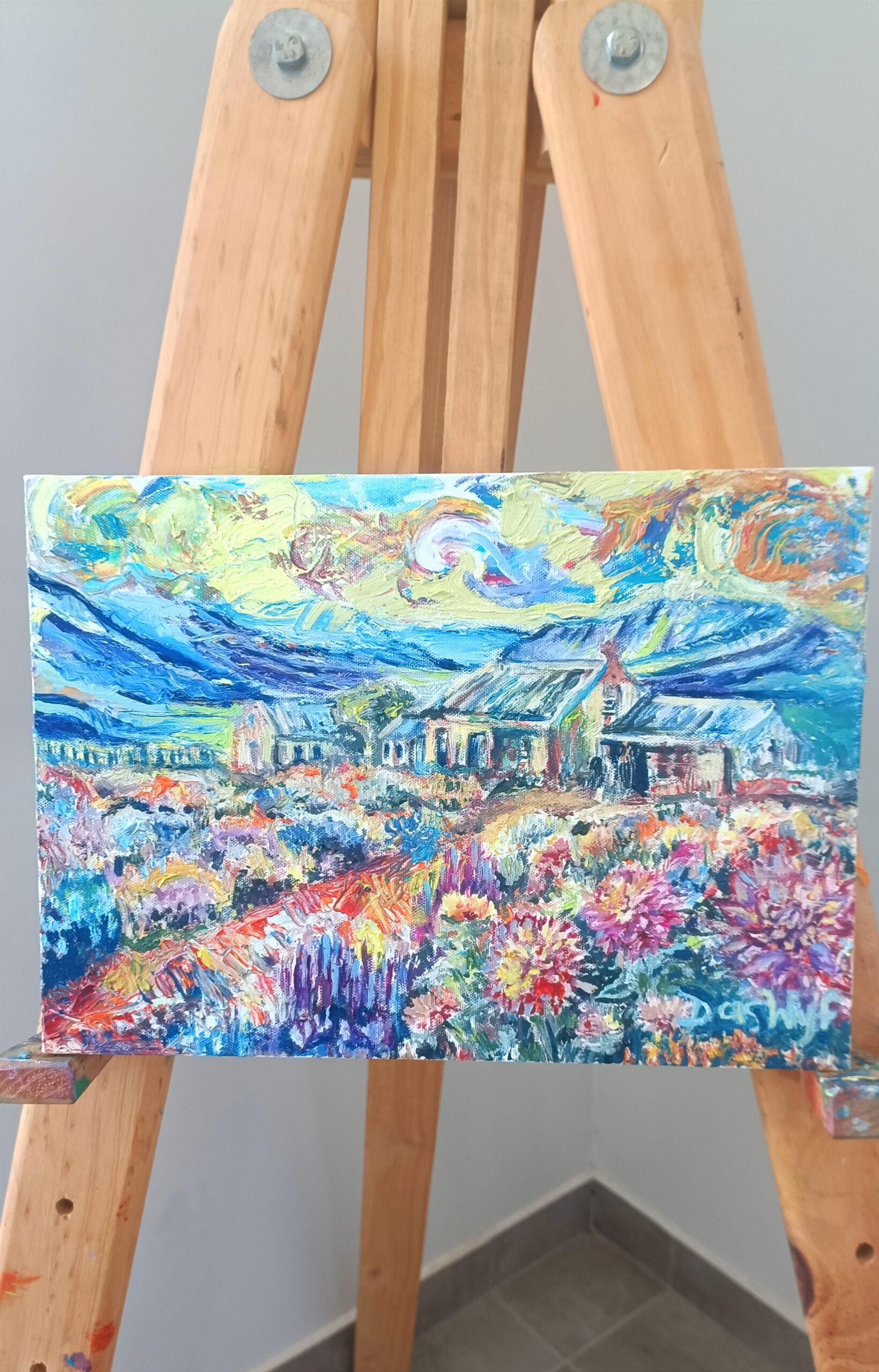 An artwork that captures the movement of light and colour. This piece truly pulls you into the landscape. Bring Fynbos and Dahlia’s into your home and feel the joy it brings.
